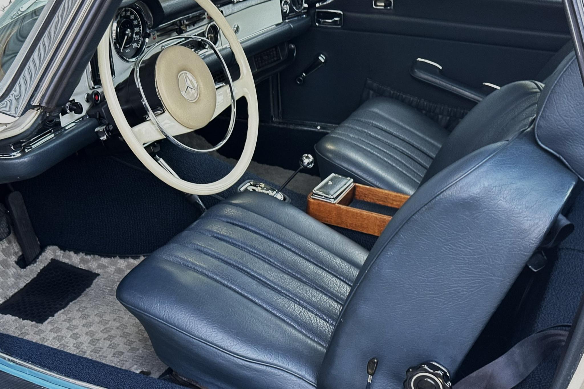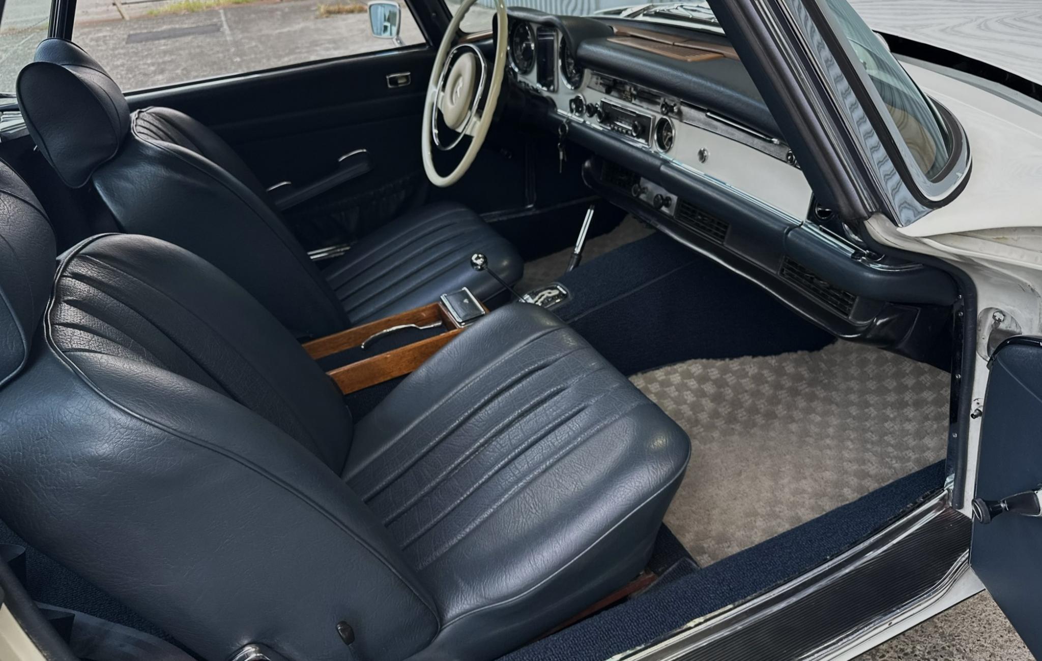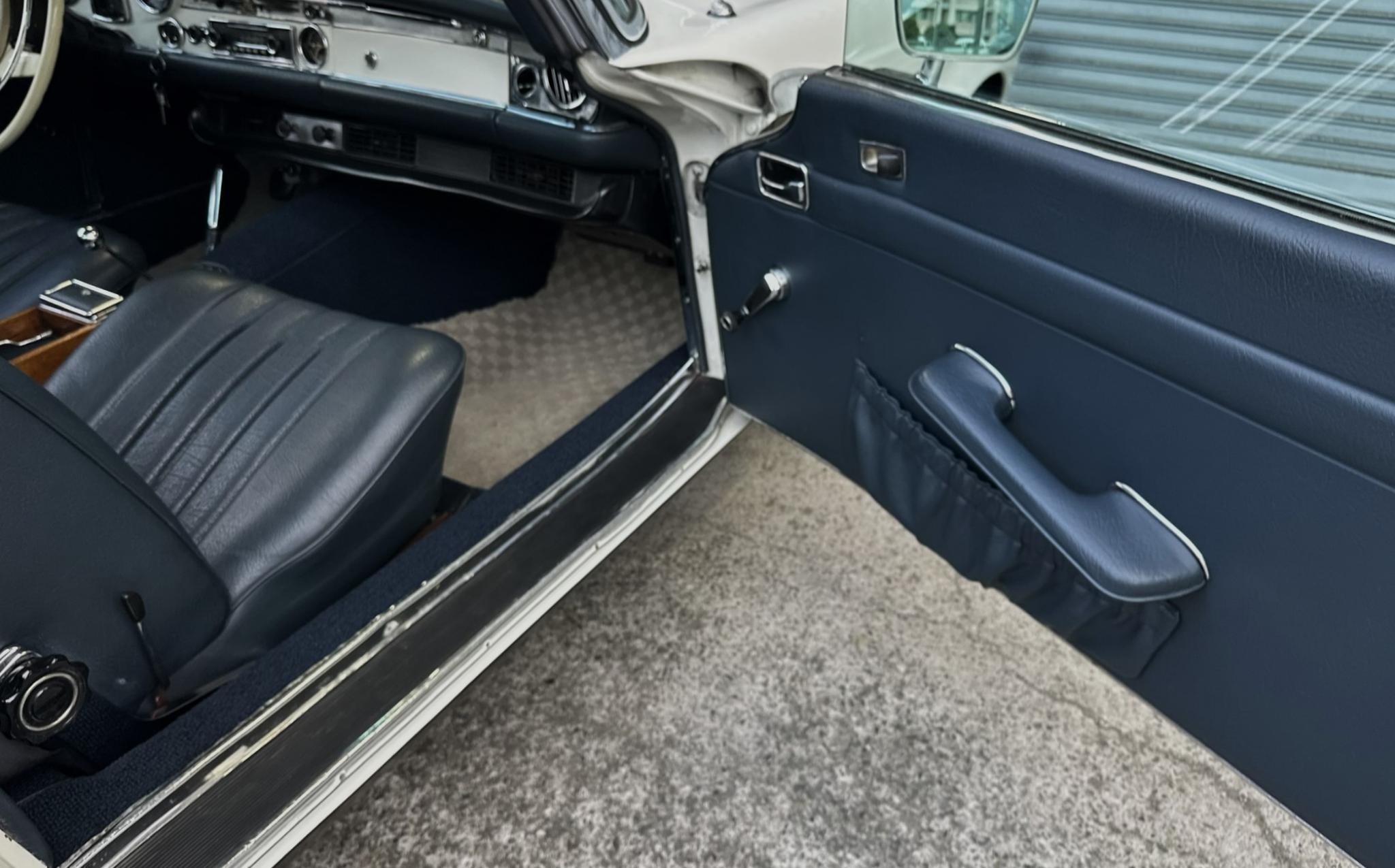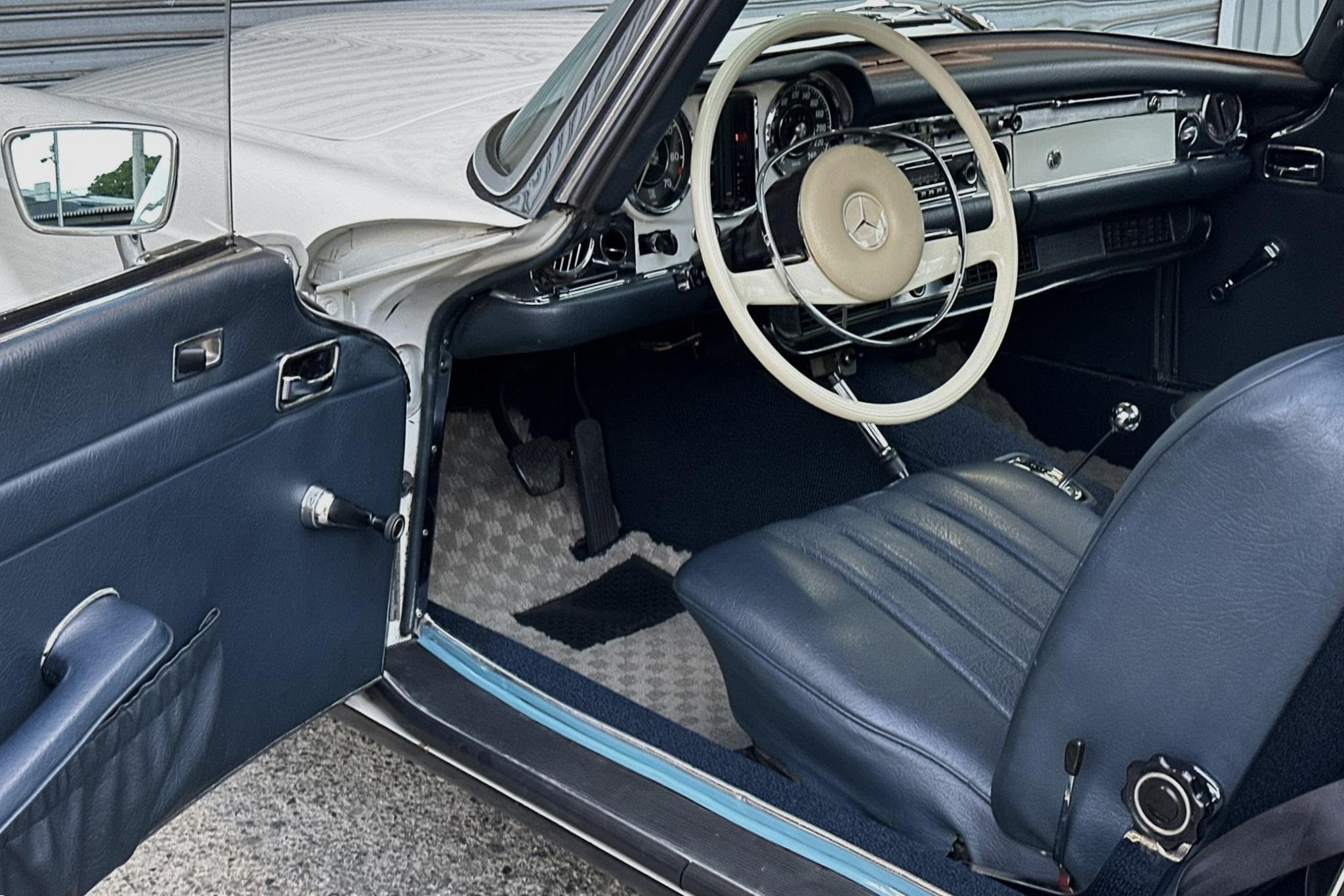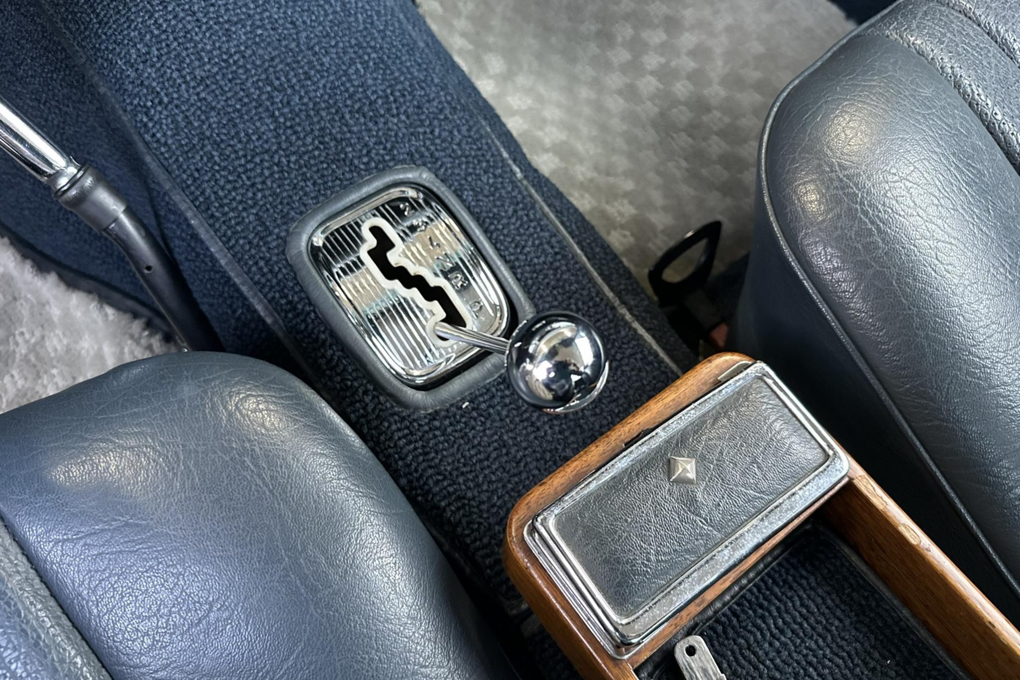 左ハンドル、4速AT,パワステアリング、クーラー装備、紺キャンバストップ